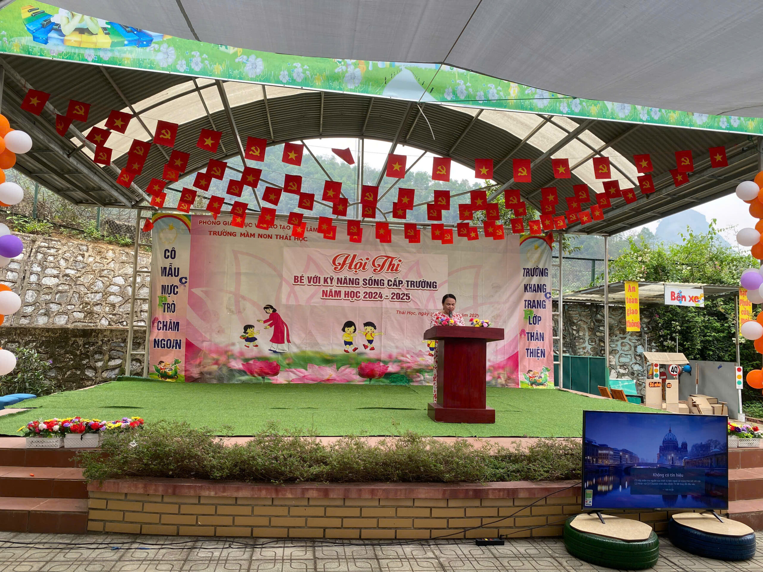 Phát biểu tại buổi lễ, cô Đinh Thị Cúc – Hiệu trưởng nhà trường đã điểm lại những thành tích nổi bật trong năm học vừa qua. Năm học 2024–2025, Trường Mầm non Thái Học tiếp tục khẳng định chất lượng giáo dục toàn diện, với tỷ lệ trẻ phát triển đúng độ tuổi đạt cao; các hoạt động giáo dục lấy trẻ làm trung tâm được triển khai hiệu quả; cơ sở vật chất ngày càng khang trang, xanh – sạch – đẹp; đội ngũ giáo viên ngày càng vững vàng về chuyên môn, tích cực đổi mới phương pháp dạy học và ứng dụng công nghệ thông tin.