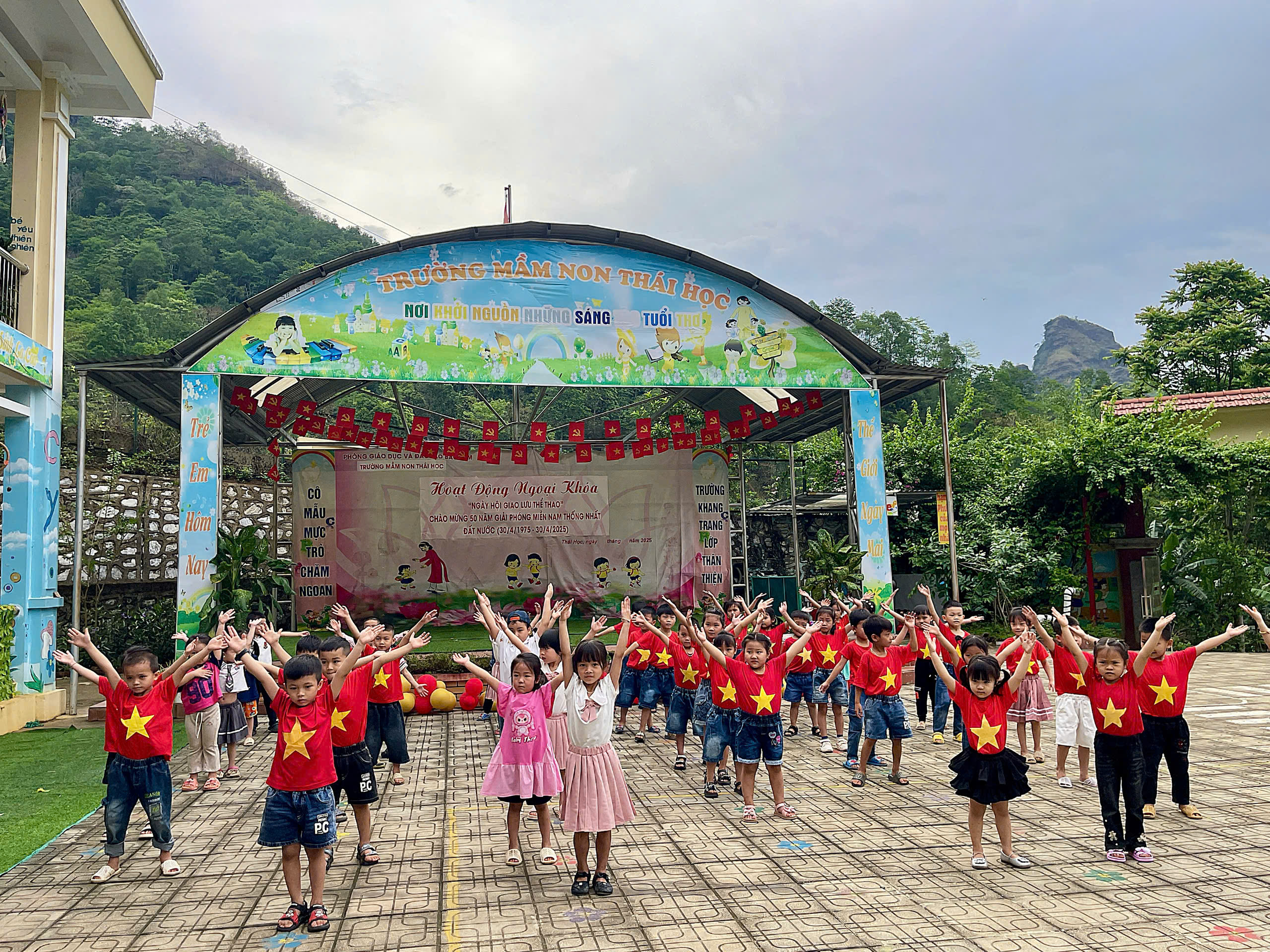Buổi lễ có sự hiện diện của đại diện lãnh đạo địa phương xã Thái Học, Ban đại diện cha mẹ học sinh, cùng toàn thể cán bộ, giáo viên, nhân viên nhà trường và các cháu học sinh thân yêu.